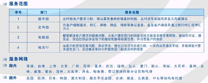 大连中运国际货运有限公司系经中国对外经济贸易合作部批准的一级货运企业,是大连国际货运协会成员、大连报关协会成员、大连商检协会成员。可以承接全球集装箱、散杂货物的海运、空运、陆运业务。并可为客户提供通关设计、保险咨询等深层次服务。